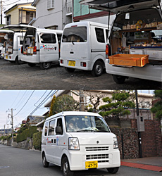 健康にこだわったパンや、 健康茶など、いろんな物を車に載せて 細い道でも坂道でも通り抜けてお客様のご自宅の前までお伺いします!